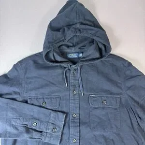 Polo Ralph Lauren Hoodie Men's L Navy Full Button Sweatshirt W/ Chest Pockets