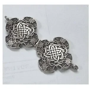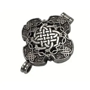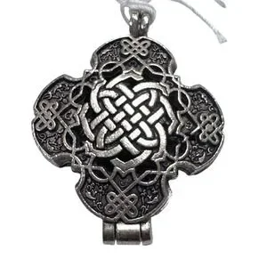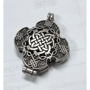 Keywords: locket, pendant, Celtic, clover, knotwork, filigree, vintage, ornate, statement, unique, collector, art deco, symbolic, silver tone