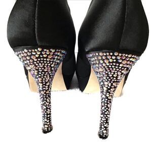 Steve Madden Black Satin Partyy-R Platform Rhinestone Heel Pumps