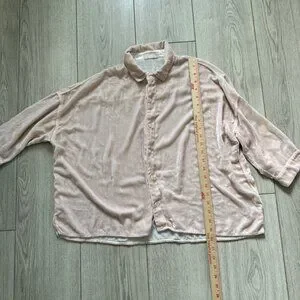 CP Shades Women's Shirt Blouse M Light Pink Velvet Boxy Fit Collared Button Down