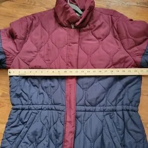 Summersalt Long Colorblock Eco Quilted Coat Midnight & Black Cherry 1XL