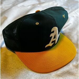 Oakland A’s Athletics Sports Specialties Snapback Mesh Trucker Hat New. Hat is brand new and was stored away. It’s from the mid 80’s or early 90’s so wear at your own discretion. Brand tag has been cut off. Once you have purchased item NO RETURNS OR NO EXCHANGES. Any further questions or offers contact me. Thank you and God Bless.