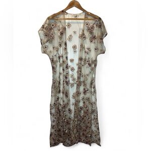 Living Doll Boho Fairy Sheer Mesh Floral Embroidered Duster Floral XS Oversized