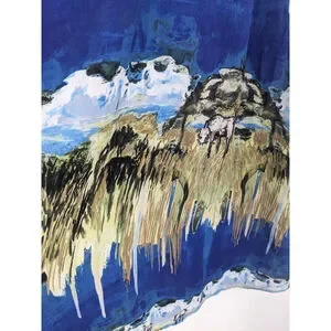 & Other Stories Dress Womens 4 Blue Horses Landscape Printed Boho Art Western