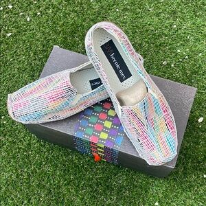 Vibrant woven design. Easy slip-on style. Perfect for casual wear.