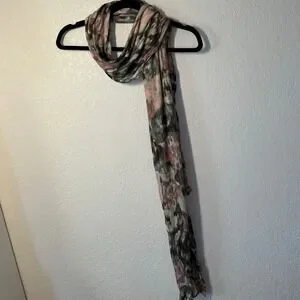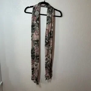 Floral Print Scarf Gray Pink Lightweight Fashion Accessory Shawl Wrap