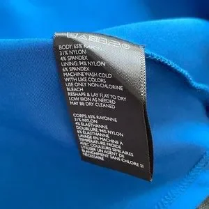 rayon blend material. Has spandex so there is some stretch to it. Hidden zipper up back. Unlined. No flaws. Size Small