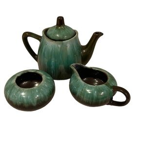 Vintage Blue Mountain Pottery Coffee Tea Pot Creamer Sugar Bowl Set Blue…