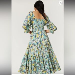 Worn once. Can be worn off the shoulder. I'm only 5' and wore it as a long dress. (Last pic)