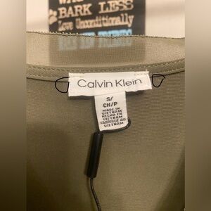 Calvin Klein green v neck blouse with puff sleeves NWOT