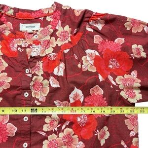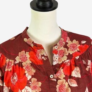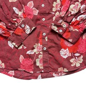 Anthropologie Porridge Floral Print Cotton 3/4 Puff Sleeve Blouse M Button Down
