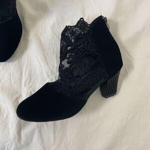 ༓ NEW unworn beautiful black faux suede and lace material ankle booties