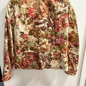 Keywords: Coldwater Creek, womens jacket, floral print, button front, garden party, brunch outfit, casual wear, spring fashion, fall fashion, botanical print, embroidered, lightweight jacket, tailored jacket