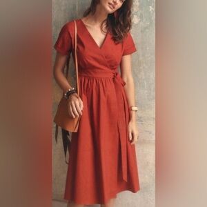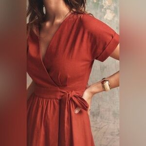 Sézane Marielle true wrap dress, terracotta (deep rust), linen cotton FR 34