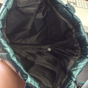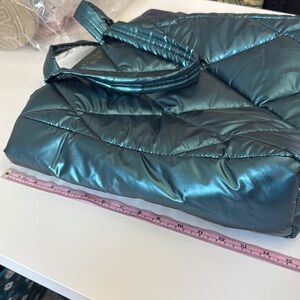 Victoria's Secret Women Tote Metallic Puffer Teal Quilted Shoulder Bag Gloss