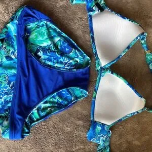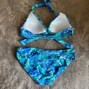 Lauren Ralph Lauren Exotic Paisley Halter Bikini Set Blue Green