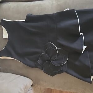 Peplum top with a black white rimmed flower on the side