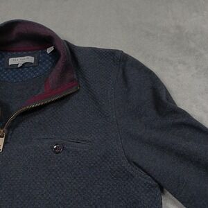 Ted Baker Sweater Mens 4 Gray 1/4 Zip Pullover Preppy Pocket Casual