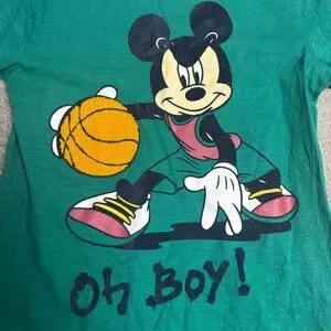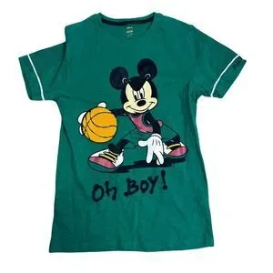 Disney Max Mickey Mouse Basketball T-Shirt Green Sports Graphic Tee Youth 13/14