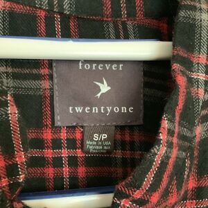 Long sleeve, red/black plaid, military style jacket. Zips in front. 100% cotton. Size small.