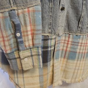 Two-in-one, this classic denim jacket features a washed plaid trim giving off that perfect layered look, built in!