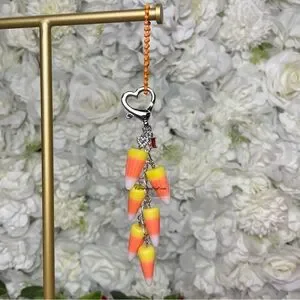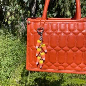 Candy Corn Cluster Halloween Bag Purse Charm Keychain SILVER