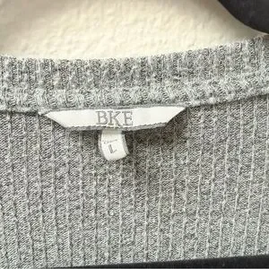 BKE Gray Ribbed V Neck Top L Long Sleeve Soft Casual Layering Tee