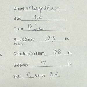 📏 Measurements (flat): Bust (pit to pit): 23", Length: 28", Sleeves: 7", Size: 1X, Classic Fit