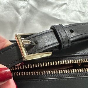 Chic black leather bag by Kate Spade. Features a sleek design with a shoulder strap.