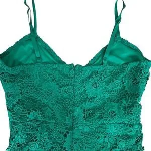 NWOT Jack by BB Dakota Anthropologie Emerald allure romper! This captivating green lace romper is a statement piece, perfect for adding a touch of romance and sophistication to your wardrobe. The intricate lace detailing creates a delicate and feminine look, while the flattering V-neckline and sleeveless design enhance your silhouette. The scalloped hem adds a playful touch, making it ideal for both daytime events and evening outings.
