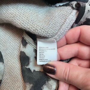 An animal printed update to our signature Looker: Our Leopard Printed Layered V-Neck sweater of the season. The V-neck layered cashmere blend pullover creates the illusion of layering with its partial shirt detailing. The hi low hemline makes this piece easy to dress up or down. Pair with tailored trouser or denim for a refined look.