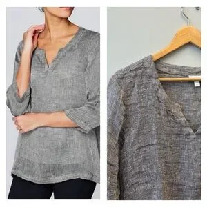 J Jill Purejill XLP Linen Top Loose Weave Boxy Blouse Gauzy