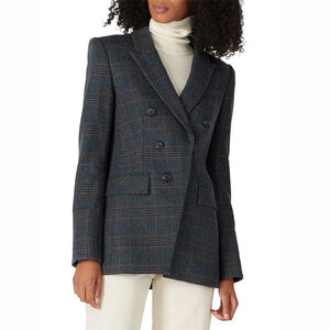 Veronica Beard Yareli Dickey Blazer Jacket Gray Plaid Wool Double Breasted Sz 2