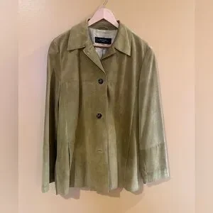 Beautiful, soft suede with shirt collar, side slits and on seam pockets.