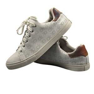 Calvin Klein Gilli Sneaker Women 11 White Logo Print Holographic Heel Casual