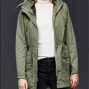 GAP utility jacket with adjustable drawstring waist. Features a practical hood. Ideal for casual wear.