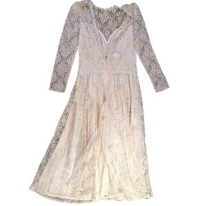 Scott McClintock Vintage Ivory Lace Wedding Dress Tea Length Long Sleeve- Size 8