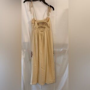 This elegant midi dress features beautiful floral embroidery on a soft cream fabric. Perfect for any occasion, it combines style and comfort effortlessly.