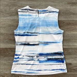 Calvin Klein Sleeveless Blouse Women's Medium Blue and White Patterned