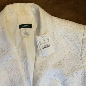 JCrew White 6 Eyelet Blazer Classic Coastal Cottagecore Timeless Minimalist