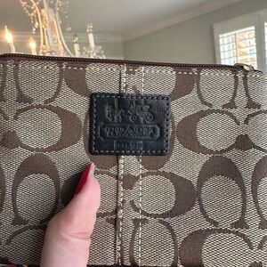 Coach Tan and Brown Signature Wristlet