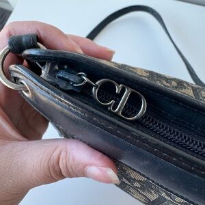 Vintage Dior shoulder bag. Navy and brown monogram canvas. Navy leather interior and shoulder strap. In good pre used condition and some wear and minor scratches on the leather parts, please see the pictures.