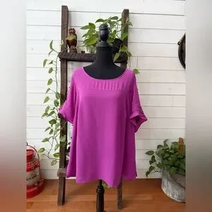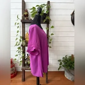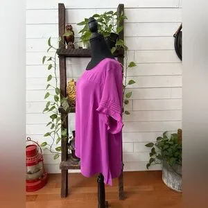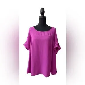 Chic magenta blouse with short sleeves. Flowy and stylish design.
