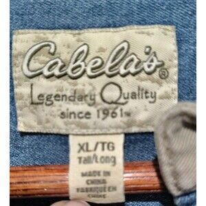Cabela's Mens XL Tall Denim Button Up Shirt Elbow Patch Hunting Lodge Grunge