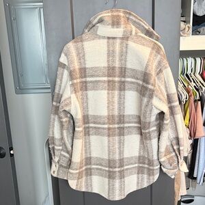 Stylish checkered jacket with a classic collar. Features a soft texture and button closure.