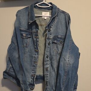 Stylish blue denim jacket with button details. Perfect for casual wear.