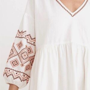 Madewell | XS | Embroidered Sleeve Linen Blend Popover Midi Dress