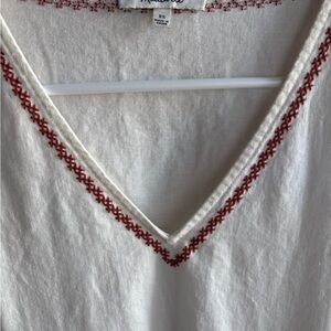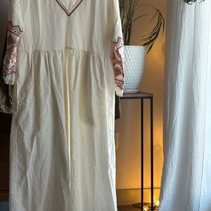 Linen cream dress with intricate red embroidery. Perfect for any occasion. Has pockets ✨ never worn.