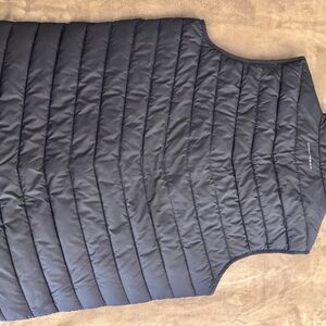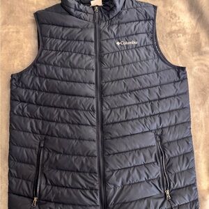 Columbia quilted vest in dark blue. Features zippered pockets and Omni Heat insulation. Great condition