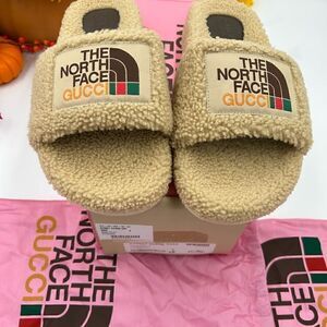 Men’s Gucci, X north face fleece sandals, size 9 made in Italy